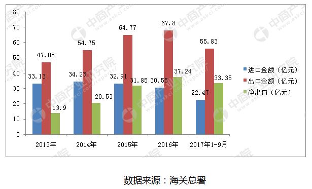 出口方面亦有不俗表現(xiàn)。據(jù)海關(guān)總署數(shù)據(jù)顯示,2016年,我國凈出口鋰離子電池達(dá)37.25億美元。值得注意的是,自2012年我國鋰離子電池出口金額首次超過進(jìn)口金額之后,我國鋰離子電池凈出口數(shù)據(jù)已連續(xù)4年增長,我國已從鋰離子電池的凈進(jìn)口國完全成長為成為鋰離子電池的凈出口國。2017年1-9月,我國鋰離子電池凈出口達(dá)到33.35億美元,相比上年同期增加了8.59億美元,繼續(xù)保持快速增長態(tài)勢(shì)。