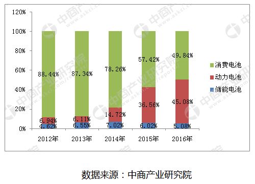 鋰離子電池具有能量密度高、循環(huán)壽命長、充放電性能好、使用電壓高、無記憶效應(yīng)、污染較小和******性高等優(yōu)勢(shì)。鋰離子電池經(jīng)過多年的發(fā)展,工藝已經(jīng)趨于成熟,價(jià)格逐步下降,加上******政策助推,導(dǎo)致鋰離子電池在電池行業(yè)的市場(chǎng)份額持續(xù)提升。鋰離子電池的終端應(yīng)用包括消費(fèi)電池市場(chǎng)、動(dòng)力電池市場(chǎng)及儲(chǔ)能電池市場(chǎng)。其中,消費(fèi)電池市場(chǎng)是******的終端應(yīng)用,2016年在鋰離子電池的終端應(yīng)用中占到49.84%。動(dòng)力電池市場(chǎng)是鋰離子電池的第二大終端應(yīng)用,2016年在鋰離子電池終端應(yīng)用中占比達(dá)到45.08%,是近年來增長***快的領(lǐng)域。